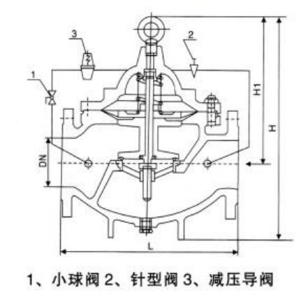 限流止回閥安裝于水泵出口,在單泵啟動和非全數(shù)設(shè)計工作泵工作時,對工作泵起限制流量作用,使泵在較高效率狀態(tài)下工作;防止電動機(jī)在水泵低揚程、大流量、低效率時,發(fā)生過載現(xiàn)象;防止超額定電流燒電機(jī)現(xiàn)象的發(fā)生,同時起到一定的節(jié)能效果。其限流原理為:依據(jù)水泵的設(shè)計工況點揚程,導(dǎo)閥自動檢測并控制水泵的實際工作揚程,以限制水泵的工作流量,限制電機(jī)的負(fù)載。