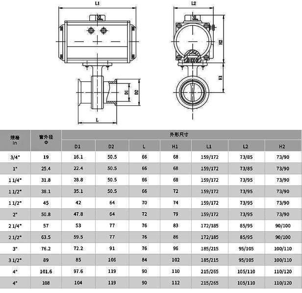 D681X氣動(dòng)衛(wèi)生級(jí)快裝蝶閥外形結(jié)構(gòu)尺寸