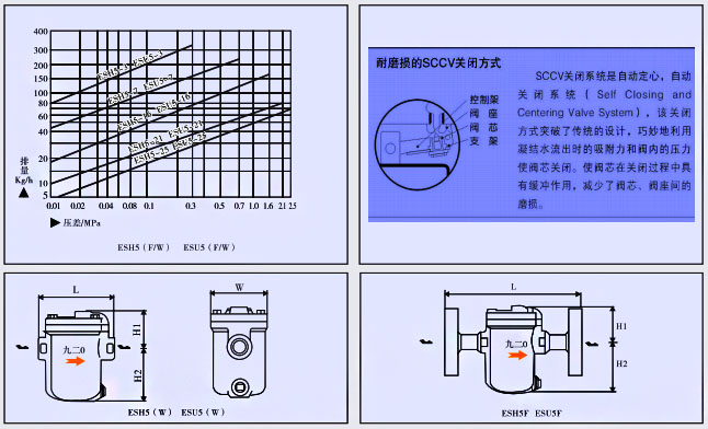 ES鐘型浮子式疏水閥具有SCCV關(guān)閉系統(tǒng),閥芯支架與特殊設(shè)計而成的“超級杠桿”相配合。閥芯在閥芯支架內(nèi)是“自由浮動的”,避免了關(guān)閉時產(chǎn)生剛性碰撞。適用于低壓及中低量蒸汽冷凝水流動的設(shè)備。吊桶內(nèi)部有水封和提升機構(gòu),故沒有蒸汽泄漏。吊桶頂部設(shè)有溢出排氣孔,可有效防止蒸汽汽鎖、空氣氣堵現(xiàn)象 (非凝結(jié)性的高溫空氣也可排除)??沙惺芨弑硥海蛇_90%)。抗水擊。所有內(nèi)件均固定在閥蓋上,易于在線保養(yǎng)維修。ES鐘型浮子式疏水閥/ESH10W鐘型浮子式蒸汽疏水閥/ES8BF倒吊桶式疏水閥/CS15H