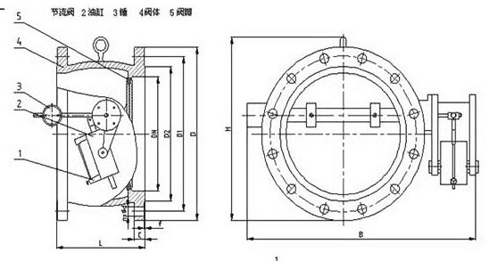 HH47X緩沖蝶式止回閥是由閥體、閥瓣、緩沖裝置和微量調(diào)節(jié)閥組成。
