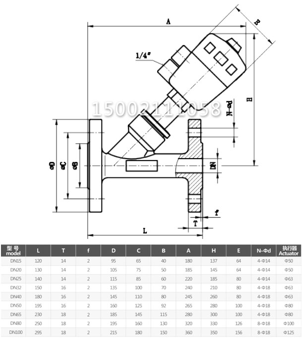 氣動(dòng)法蘭角座閥主要零外形及連接尺寸