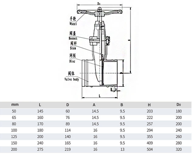 溝槽信號閘閥外形結(jié)構(gòu)尺寸