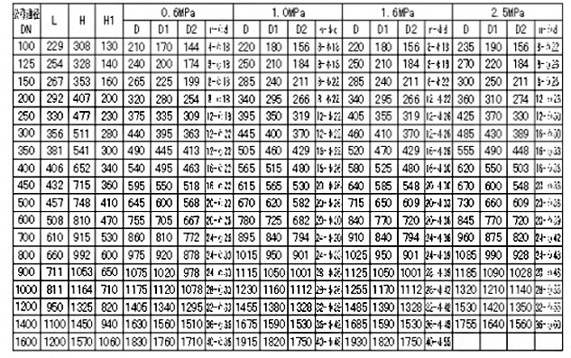 | 公稱壓力(MPa) | 0.6 | 1.0 | 1.6 | 2.5 |