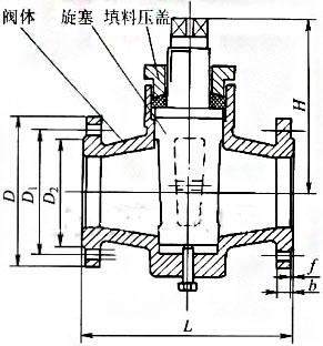 X43T-10鑄鐵二通旋塞閥外形結(jié)構(gòu)尺寸