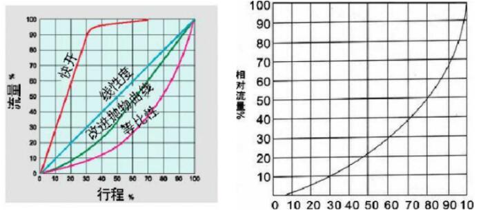 流量特性-V調(diào)節(jié)球閥的圈有流量特性曲線圖