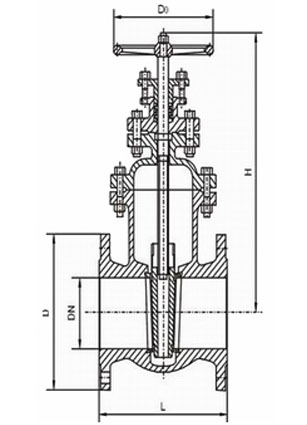 Z45W不銹鋼暗桿法蘭閘閥外形結(jié)構(gòu)尺寸
