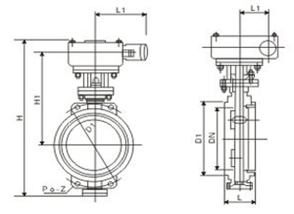 防盜蝶閥主要外形及連接尺寸