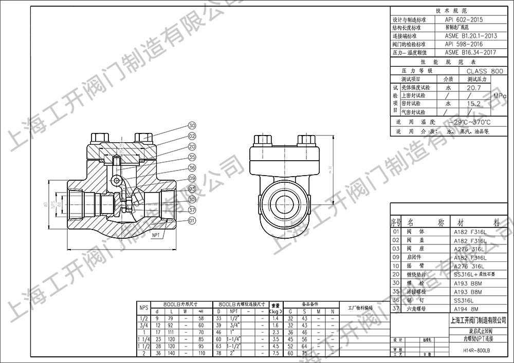 • 鍛鋼旋啟式止回閥H14R-800LB圖紙