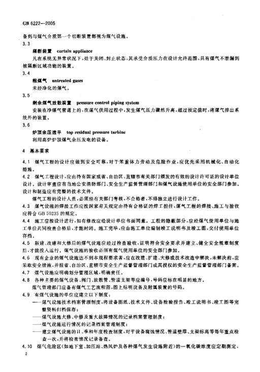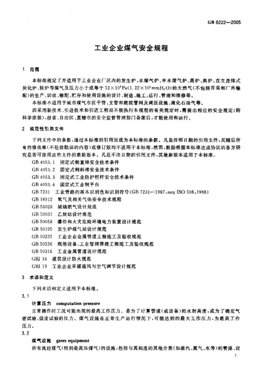 • GB6222-2005《工業(yè)企業(yè)煤氣安全規(guī)程》