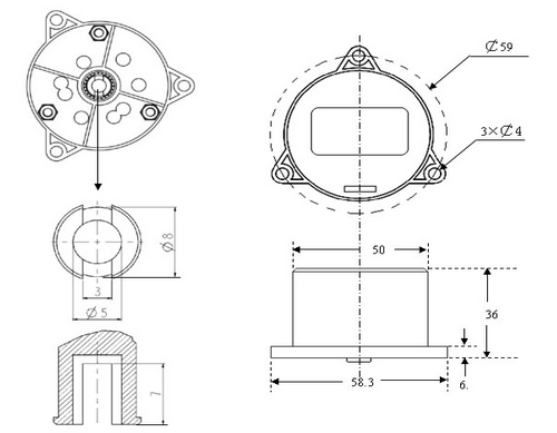 該編碼器屬于精密光電、磁混合編碼器,它集精密機(jī)、電、光、磁技術(shù)于一體。單圈角度由磁性編碼器完成,多圈圈數(shù)通過6只光電編碼盤記憶,所以編碼器記憶的是絕對(duì)位置信息,無論編碼器上電與否,編碼器都能記憶量程范圍內(nèi)的任何角度和圈數(shù)。 6只編碼盤記憶的是格雷碼信息,通過CPU轉(zhuǎn)換成自然二進(jìn)制碼輸出。