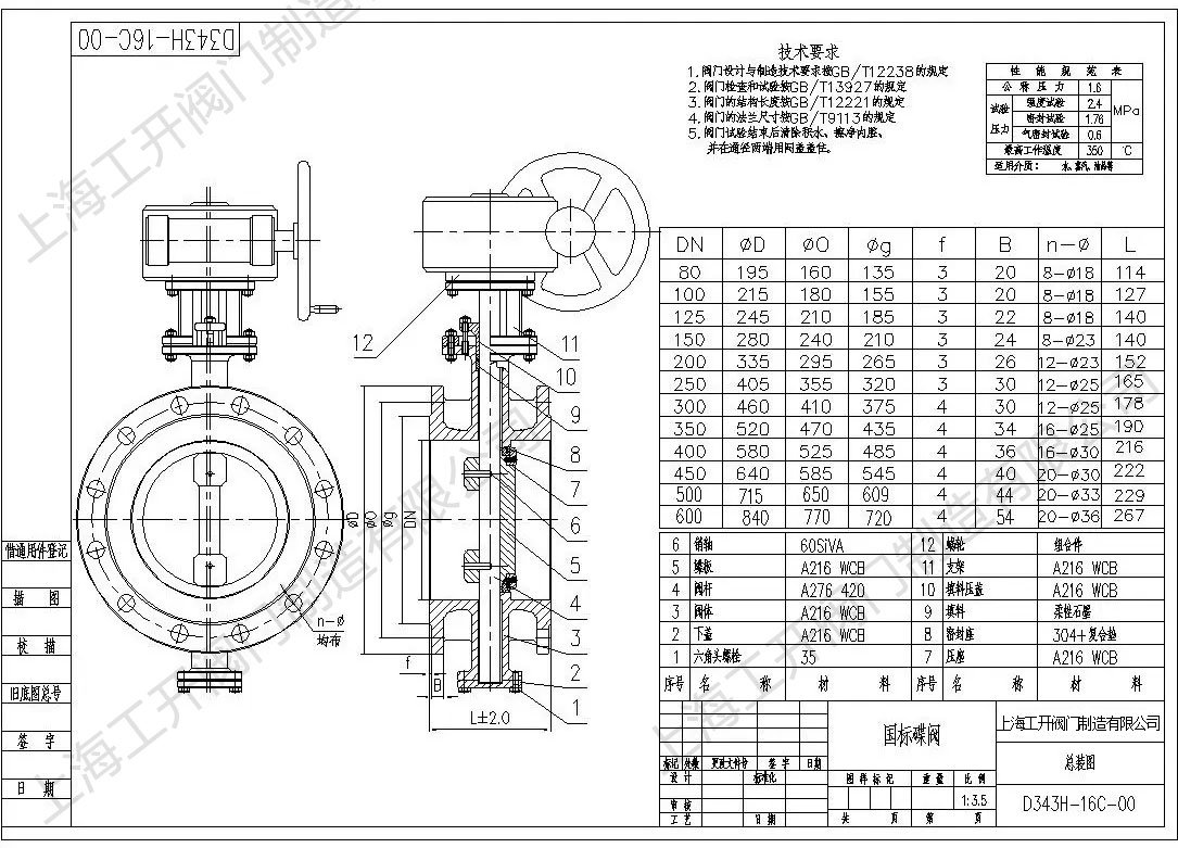 • D343H-16C圖紙-硬密封蝶閥圖紙