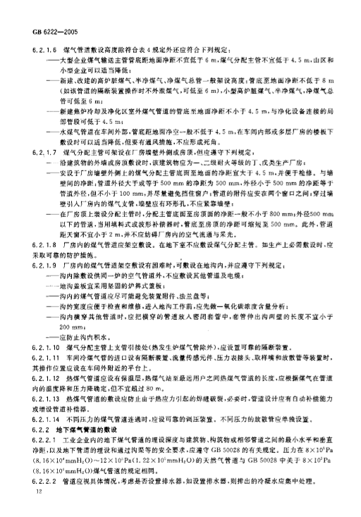 • GB6222-2005《工業(yè)企業(yè)煤氣安全規(guī)程》
