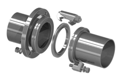 1)ISO-K 真空接頭通常由法蘭(flang)、法蘭爪(clamp)、密封圈(O-Ring)、中心定位環(huán) (centering ring) 組成。
