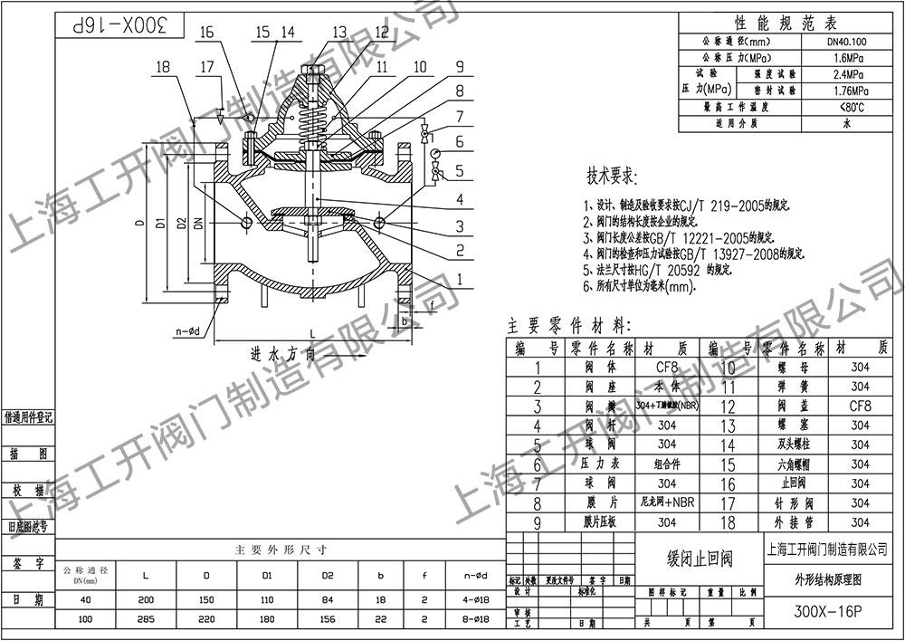 300X-16P不銹鋼緩閉式止回閥圖紙