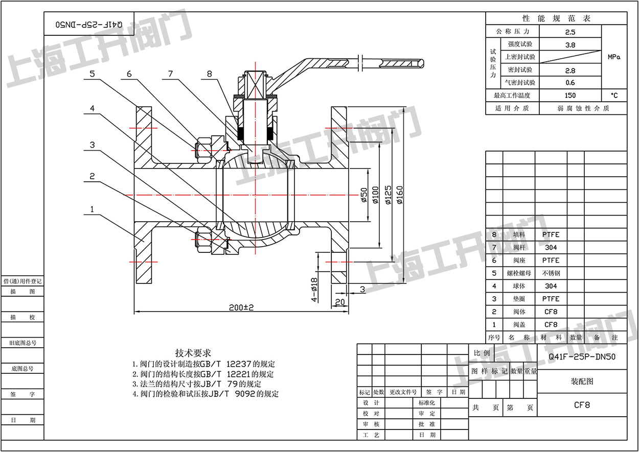Q41F-25P-DN50不銹鋼球閥圖紙