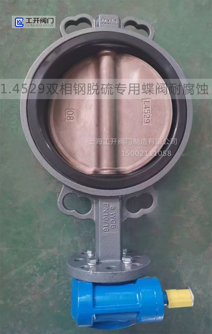 1.4529不僅滿(mǎn)足脫硫漿液對(duì)閥門(mén)的腐蝕和磨損,也保證其他部件不被石灰石(或石灰膏)漿液腐蝕。通過(guò)更換閥板密封圈、O型圈、蝶板、轉(zhuǎn)軸等材質(zhì),可適用多種介質(zhì)和不同溫度。