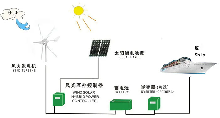風(fēng)光互補(bǔ)發(fā)電系統(tǒng)主要由風(fēng)力發(fā)電機(jī)組、太陽(yáng)能光伏電池組、控制器、蓄電池、逆變器、交流直流負(fù)載等部分組成。該系統(tǒng)是集風(fēng)能、太陽(yáng)能及蓄電池等多種能源發(fā)電技術(shù)及系統(tǒng)智能控制技術(shù)為一體的復(fù)合可再生能源發(fā)電系統(tǒng)。