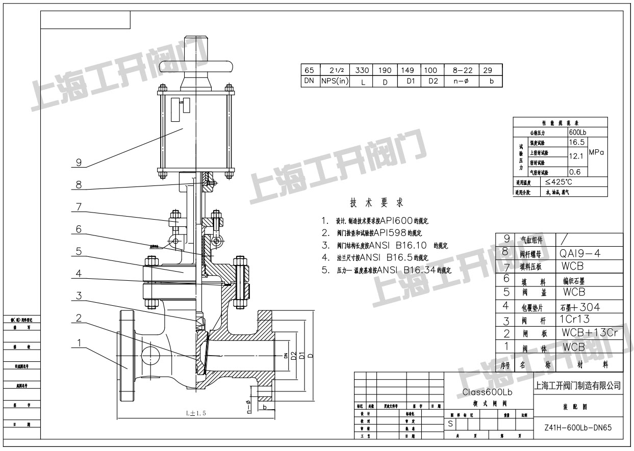 • 美標閘閥Z41H-600LB-DN65-美標閘閥圖紙