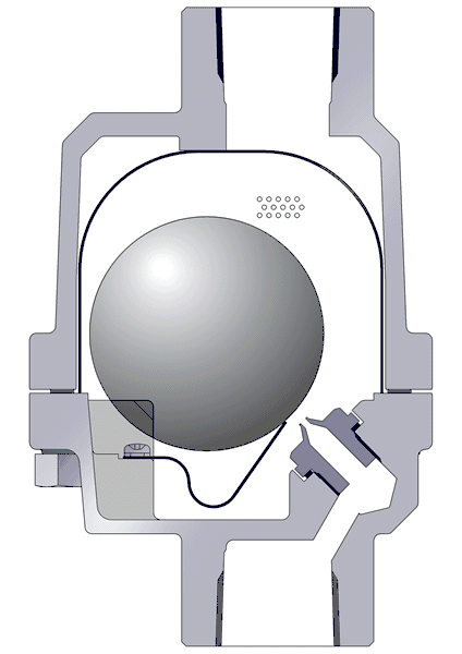 自由浮球式蒸汽疏水閥利用浮力原理,浮球根據(jù)凝結(jié)水量的多少,隨水位的變化而作升降,自動調(diào)節(jié)閥座孔的開度,連續(xù)排放凝結(jié)水,當(dāng)凝結(jié)水停止進(jìn)入時(shí),浮球降的底部,回到關(guān)閉位置,排水停止,由于排水閥座孔總是在凝結(jié)水位以下,形成水封、水、氣自然分離,達(dá)到無蒸汽泄漏。