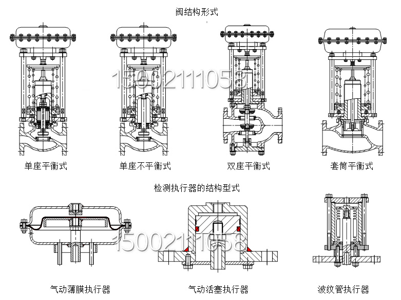 調(diào)壓閥主要有檢測執(zhí)行機構(gòu)、調(diào)節(jié)閥、冷凝器(蒸氣時)與閥后(或閥前)取壓管等四部分組成,其結(jié)構(gòu)見下圖。